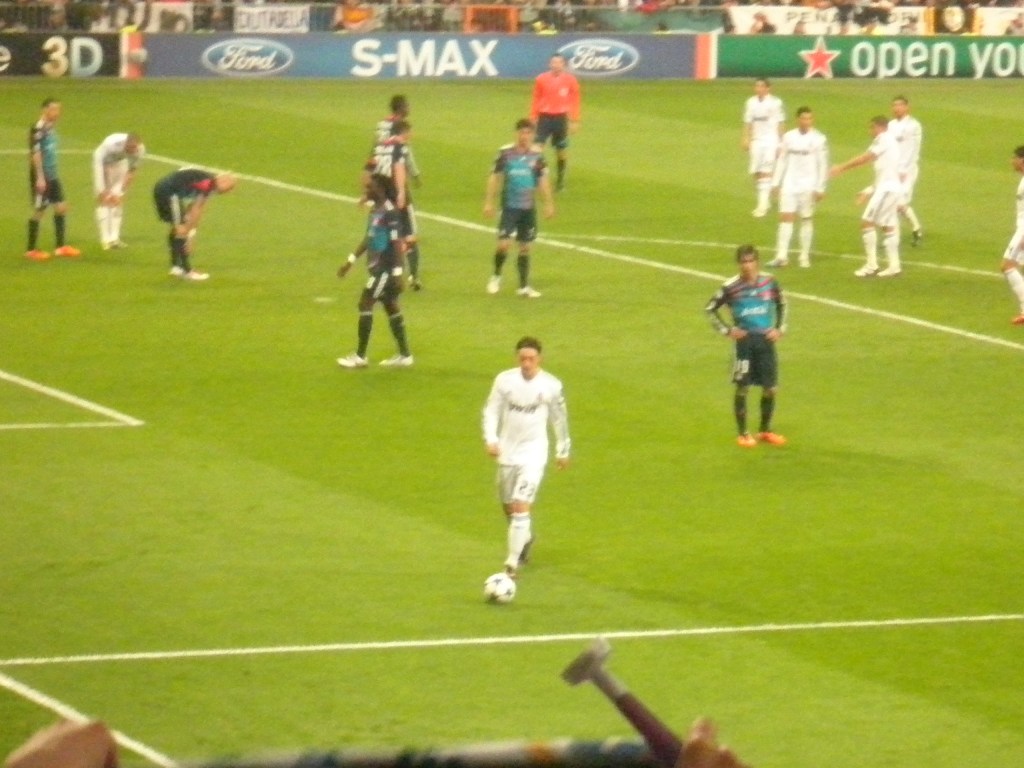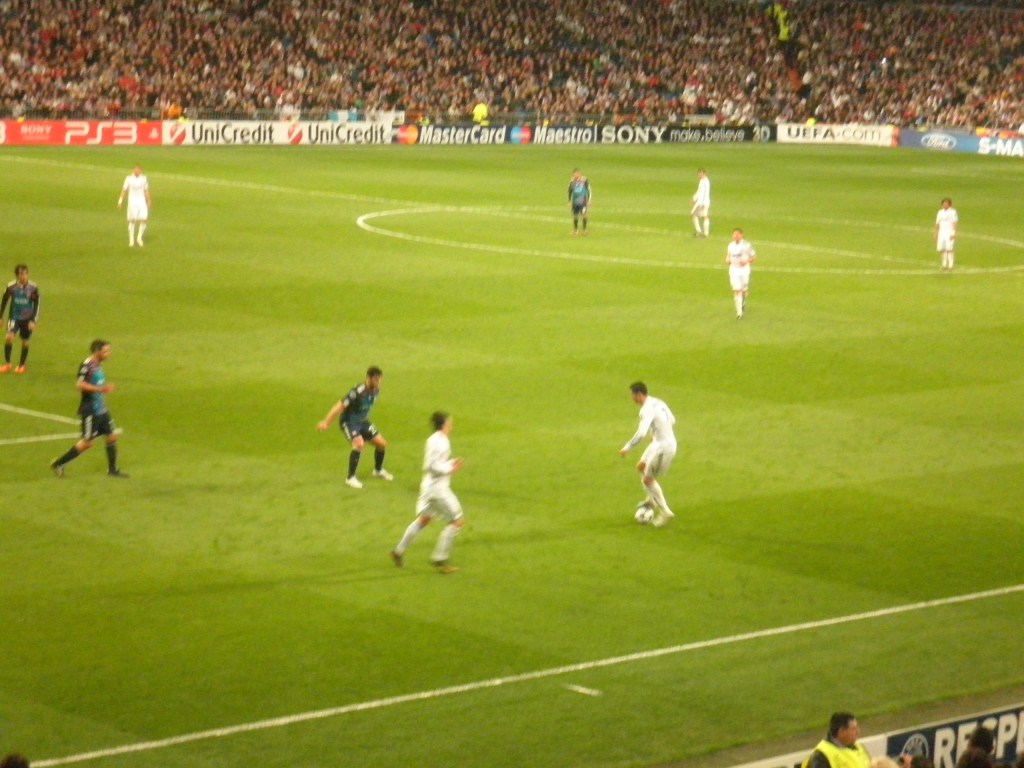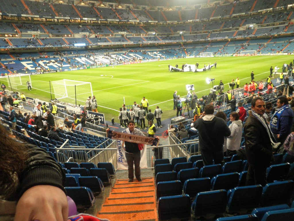 Era un partido de octavos de final de Champions League de la temporada 2010/2011. Su precio como podéis imaginar era bastante elevado. Aunque como experiencia fan, sin duda, mereció la pena. No es algo asumible para hacer habitualmente, pero para cualquier hincha debe ser un objetivo de futuro (al igual que el disneyfriki ahorra para visitar sus parques temáticos). Estuvimos cerca del fondo sur, muy cerca del corner, por lo que la visión era excelente. A la hora de comprar las entradas esta la duda de ¿cuál compro? Evidentemente el precio incrementa conforme más cercano al terreno de juego se esté. En el caso del Santiago Bernabéu puedes optar por el 4º Anfiteatro, que suele ser la opción más barata, pero también la más elevada del campo. El problema es que tememos que no se vea igual que en el campo. Y es verdad, desde ninguna posición se ve igual que en televisión, pues allí tenemos diferentes enfoques, cámaras, que registran todas las posiciones. Por lo que, estés donde estés, nunca vas a verlo «igual» que en televisión. Por lo tanto el fútbol en directo tiene un valor añadido de carácter emocional y catártico; de compartir experiencias; de sentir lo que no se puede sentir en televisión.