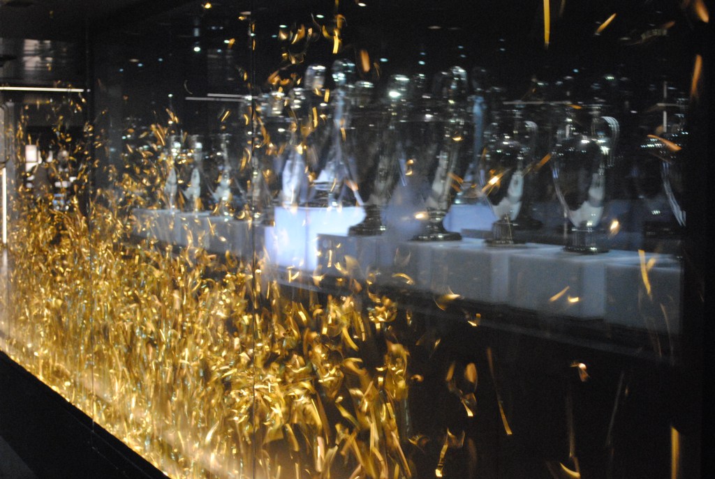 El Real Madrid no dispone de tanta variedad de experiencias, aunque la básica incluye una audioguía a través del teléfono móvil. El Tour ha mejorado sustancialmente desde la primera visita, incluyendo un recorrido más espectacular, mejoras audiovisuales en el museo y nuevas experiencias. Comienzas el tour desde lo más alto del estadio, donde puedes ver una gran perspectiva del estadio, y evidentemente tomar grandisimas fotos. El museo es muy completo, incluyendo piezas de toda la historia del Real Madrid; y no únicamente de la sección de fútbol. Sin duda, la sala más especial es la que incluye todas las Champions League conquistadas por el club, colección única en el mundo. Los vídeos y la música acompañan todo el recorrido. Posteriormente hay un lugar donde te realizan un fotomontaje junto a un jugador y otra con la Champions; fotos que podrás adquirir al final del recorrido (que para sorpresa de nadie es en la tienda del club). El momento más especial es compartir el terreno de juego, los banquillos, y el túnel de jugadores.