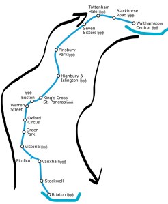 Otra cosa que debes tener presente dentro del metro, es que recorren la línea en ambas direcciones. Por ejemplo, la Victoria Line tiene como punto de partida Walthamstow Central o Brixton, y como punto de llegada Brixton o Walthamstow Central. Es por ello que en una misma línea habrá dos recorridos, uno de «subida» y otro de «bajada». Debes tenerlo claro, porque si deseas ir hacia «abajo», deberás ir al andén en dirección Brixton. Dentro del sistema de túneles o al aire libre del metro tiene diversos mapas que te indican y advierten de hacía dónde va cada uno de los trenes. Únicamente debes tener cuidado.