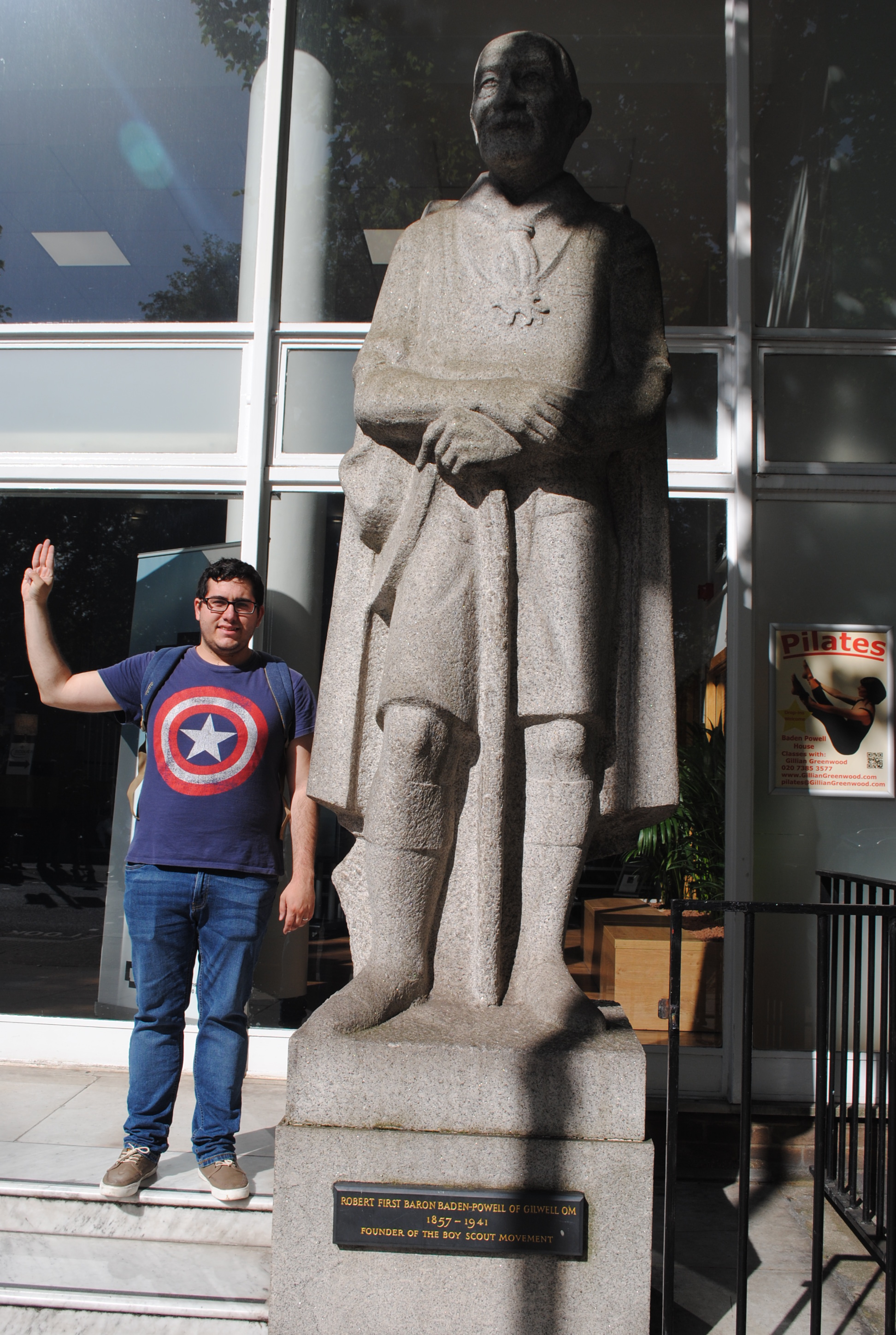 El siguiente destino era el Natural History Museum, que abría a las 10:00. (Sí, todavía no era esa hora y ya habíamos visto todo lo anterior). Llegamos antes de lo previsto al museo, así que aprovechamos para visitar un lugar muy especial para nosotros y que se encontraba en la calle contigua al museo. La Baden Powell House ⚜️ es un hostal con sala para conferencias; que lleva el nombre de Baden Powell, fundador del movimiento scout. Dispone de una pequeña vitrina con objetos a la venta scouts (recalco pequeña), una estatua en su entrada y una gran flor de lis en la pared. Ya os hemos contado varias veces, que tanto Ana como yo somos scouts, así que es un lugar que nos hacía particular ilusión. Eso sí, únicamente es eso, no os penséis que es un museo scout, la casa de Baden Powell o algo parecido.