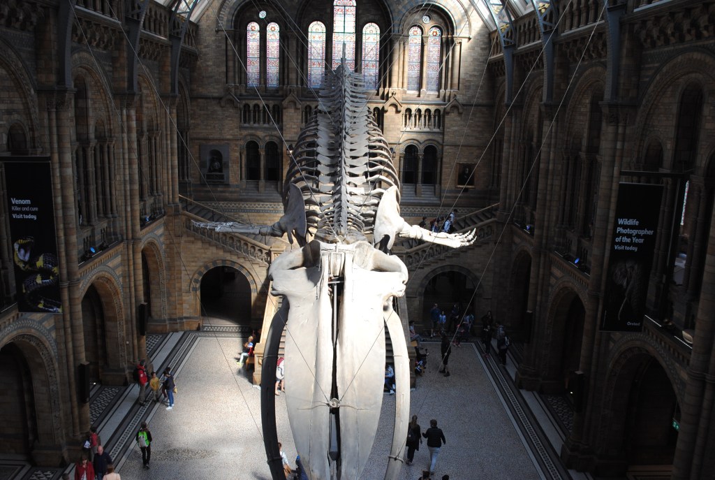 El Museo de Historia Natural de Londres 🐋 es un museo imprescindible. De verás, imprescindible. Es un museo que engloba todo lo relacionado con los seres vivos y la Tierra🌍. Desde ámbitos como la geología, la geografía o la geomorfología para la Tierra, pasando por los animales prehistóricos y actuales y llegando hasta el conocimiento del cuerpo humano. Es un museo muy completo, didáctico para niños y no tan niños, y además, está en un edificio precioso, tanto por fuera como por dentro.