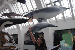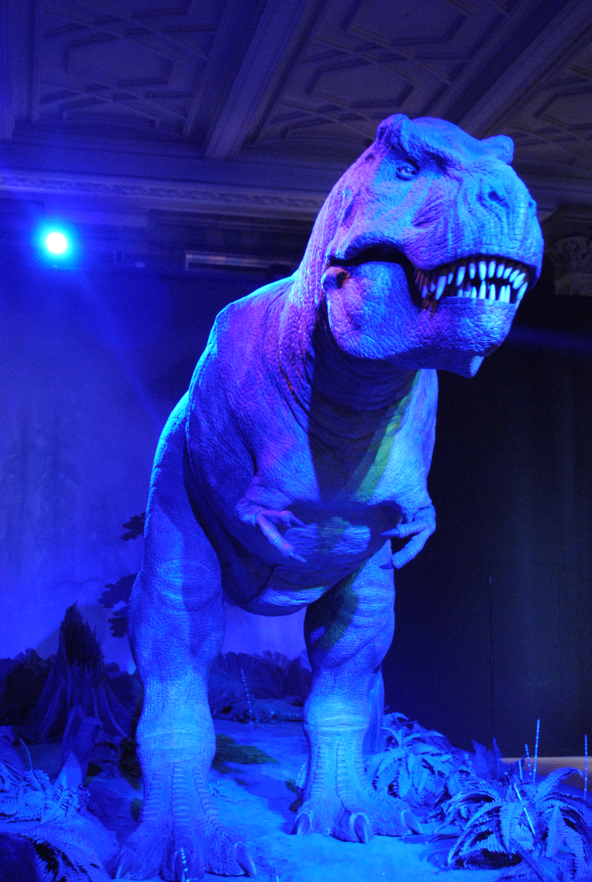 En la siguiente zona (la Green Zone) atraviesas una zona de vitrinas con minerales de todo tipo, que da paso a una de las vistas más conocidas de este lugar; una nave central en la que cuelga el esqueleto de una ballena azul. En uno de los pisos superiores no olvidéis visitar el tronco de una secuoya. Una de las zonas más visitadas se encuentra en la Blue Zone, es la zona de los dinosaurios🦖. Huesos, explicaciones, piezas e incluso algunos dinosaurios en movimiento (esperemos que no desemboque en un Jurassic World de verdad). Sorprende lo bien logrado que están, especialmente el más grandetón. El museo mantiene su nivel de interacción a lo largo de todas sus salas, en esta, podrás ponerte a manejar las patas de estos animales para comprobar cómo es su movimiento; o concursar junto a dos personas más en un juego de preguntas «¿Es esto un dinosaurio?» (consistente en una serie de imágenes de distintos animales, a las que hay que pulsar Yes o No). Además de dinosaurios, hay toda una fauna que descubrir en esta zona. Se trata de pasillos y salas con animales disecados 🐨expuestos detrás de vitrinas. Quizás es una de las partes que menos disfruté, desconozco si son reales (según leí, sí lo eran) pero era una sensación extraña, como estar ante un pequeño cementerio de animales.