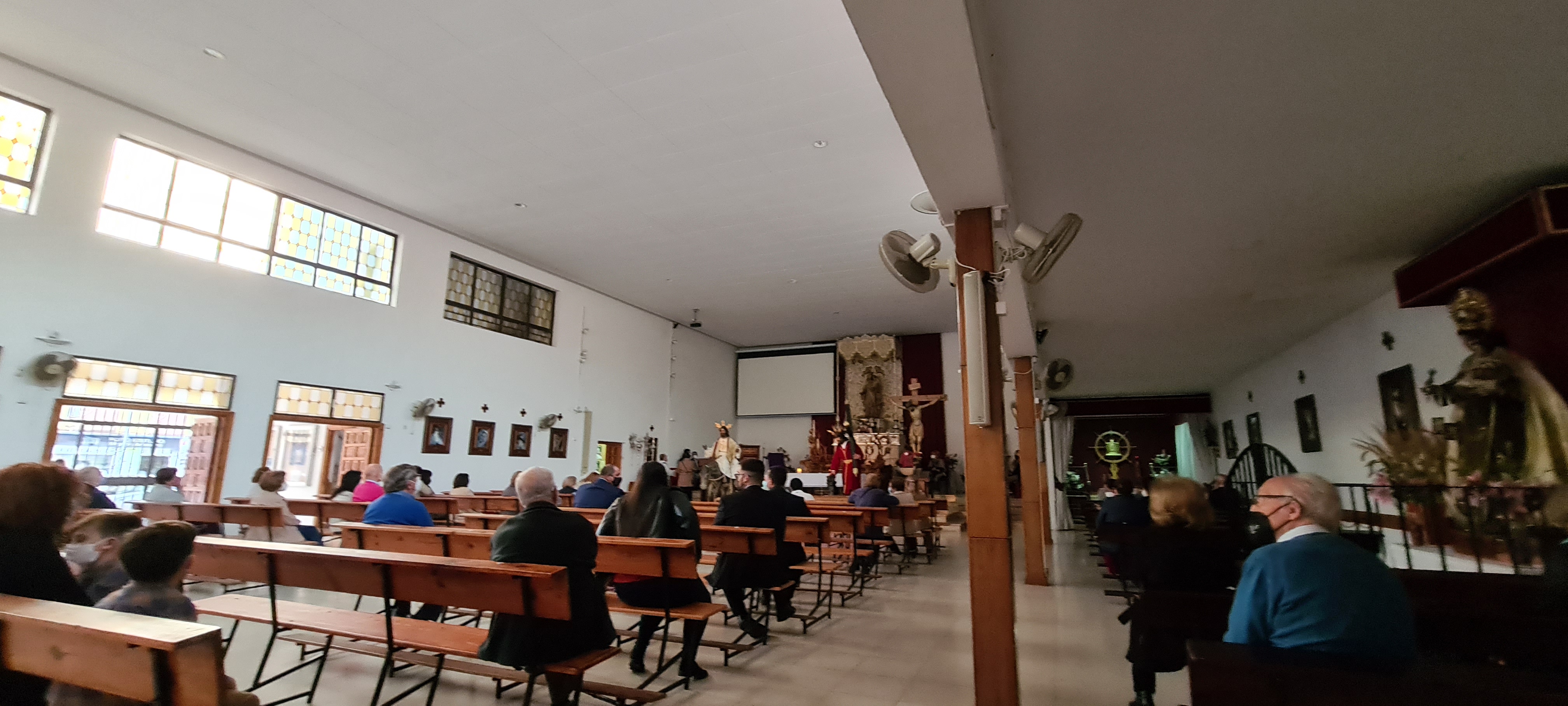 La iglesia se inauguró en 1970, siendo una de las más modernas de la ciudad. Su ubicación, cercana al río y a la gente del mar, ha acrecentado la especial vinculación del templo con la Virgen del Carmen (patrona de los marineros). Destaca su espacio de única nave, con gran amplitud, en cuyo interior se alberga distintas imágenes. En ella encontramos al Cristo de la Entrada en Jerusalén (conocido popularmente como la Borriquita), Cristo de la Salud, la Virgen de la Entrega y la Virgen del Carmen.